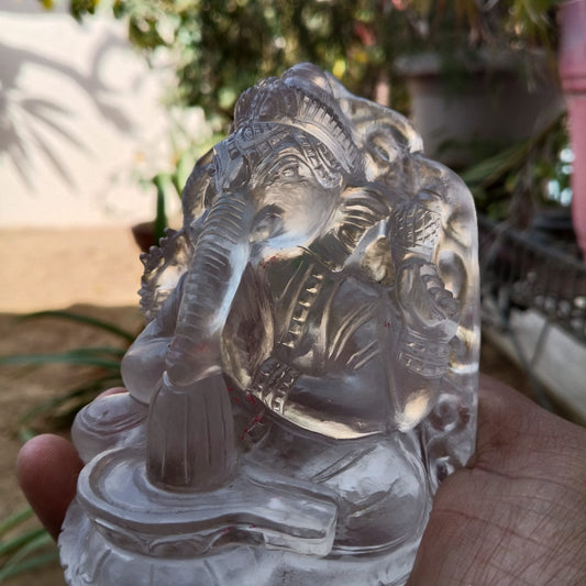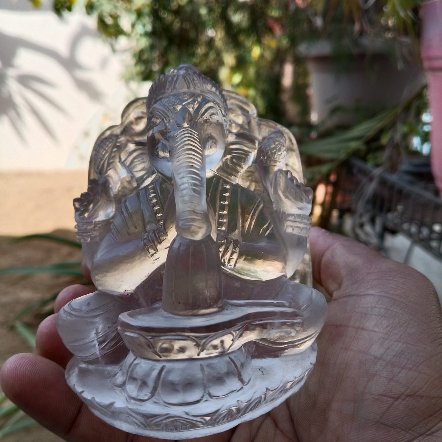 The Crystal Ganesha in the Mahabharat Writing Pose represents wisdom, focus, and devotion to knowledge. Handcrafted from natural clear crystal, this sacred form is ideal for homes, offices, and study...