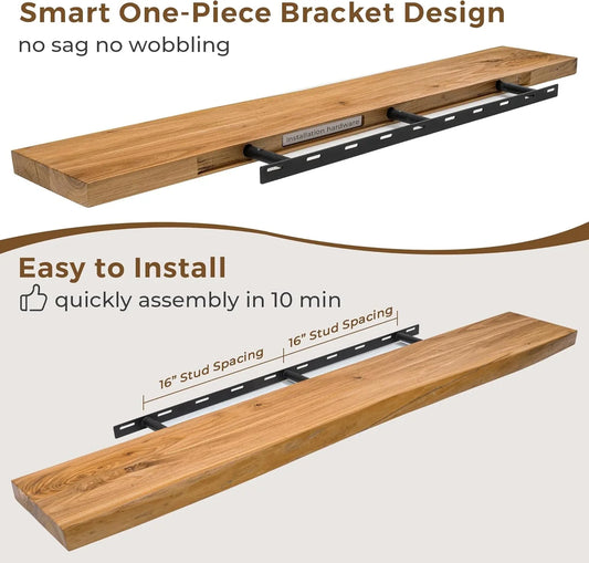 Live Edge Rustic Solid Elm Wood Floating 1 piece Shelves – Wall Mounted with Invisible Bracket | Natural Finish by Sahaj Hast