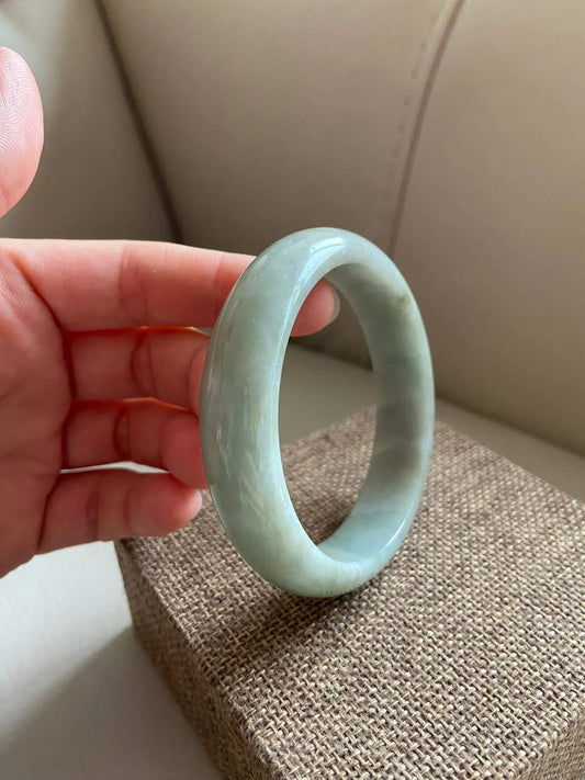 SahajHast Handmade Natural Grade A Jadeite Jade Bangle – Light Green with Icy Sea Green Hues | Classic Round Untreated Bracelet