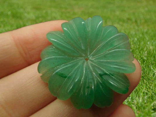 Sahajhast – Green Aventurine Gemstone Flower Bead | Natural Carved Stone Gift for Her | Handmade Jewelry Making Bead