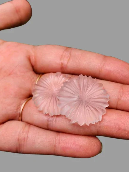 Sahajhast – 1 Pair Natural Crystal Quartz Hand Carved Flower Shape Briolette Beads