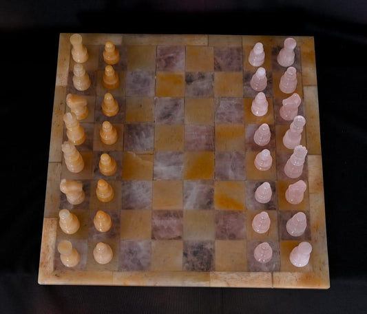SahajHast Gemstone Chess Set - Handcrafted Yellow Aventurine & rose quartz