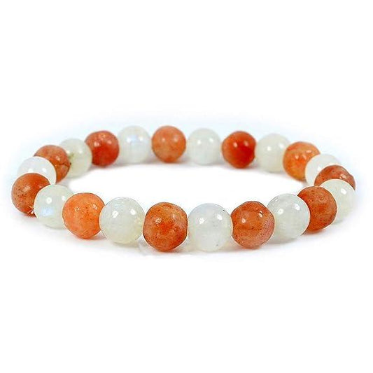 Moonstone & Sunstone Healing Crystal Bracelet – Unisex Adult (Peach & White)