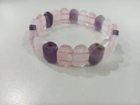 Sahaj Hast - Rose Quartz and Amethyst Oval Faceted Bracelet