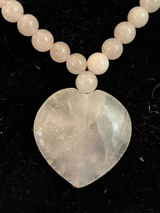 SahajHast Rose Quartz Necklace – Handmade Beaded Jewelry with Heart Pendant for Love & Healing