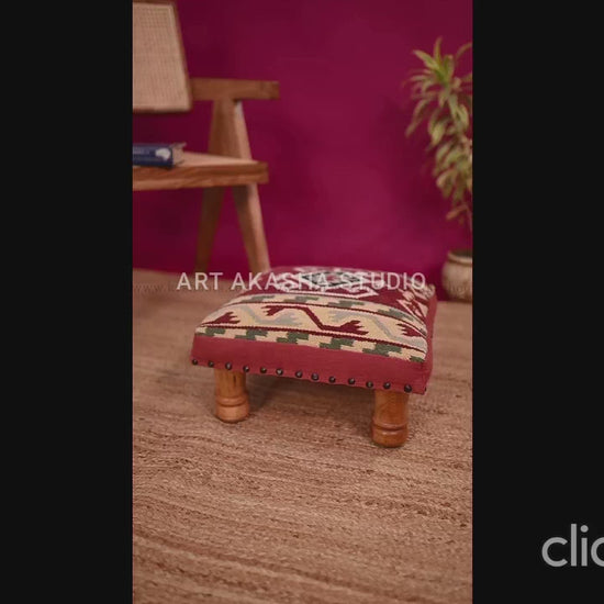Design: Inspired by bohemian aesthetics, this ottoman features a vibrant, multicolored geometric pattern that adds a touch of culture and charm to any room.