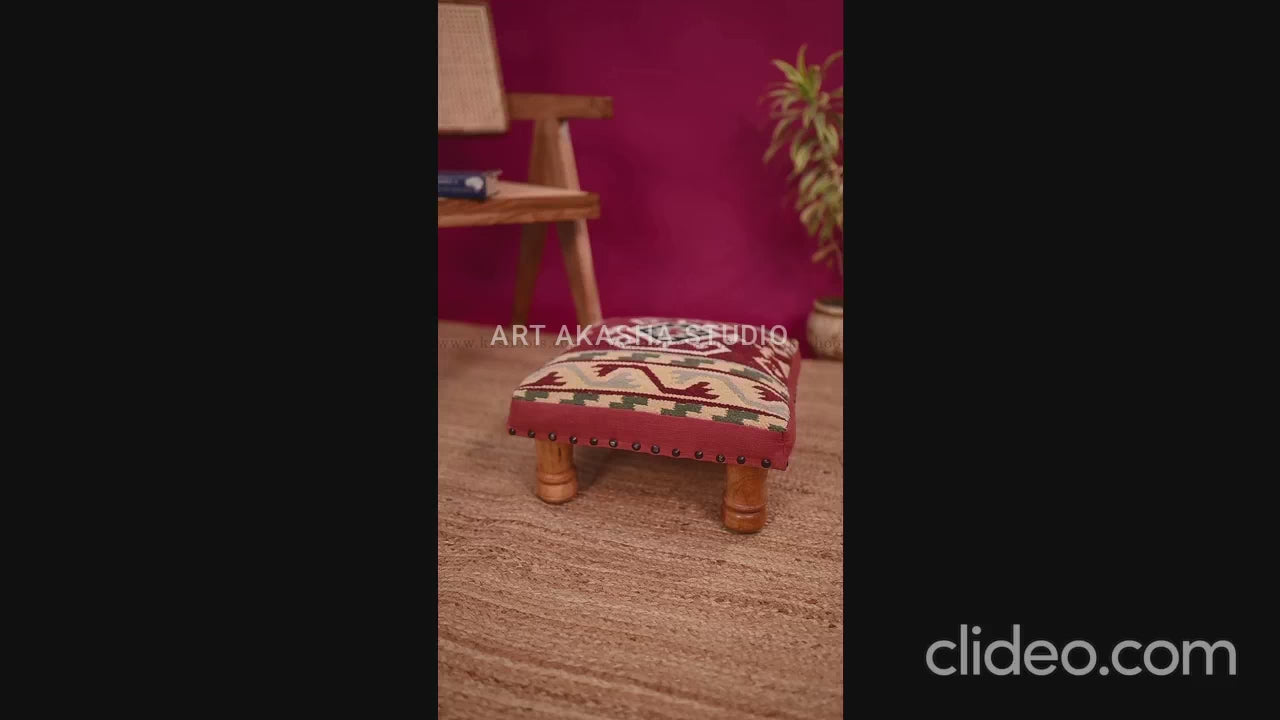 Enhance your home decor with this handcrafted bohemian ottoman, perfect for adding style and functionality to any space. The vibrant and intricate geometric design makes it a standout piece, while its sturdy construction ensures both durability and comfort. Whether used as a footstool, extra seating, or a decorative accent, this ottoman is a versatile addition to your home.